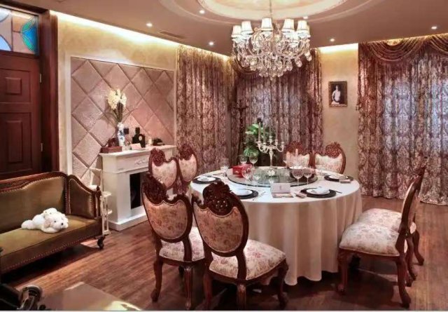 三楼是一个大型的家宴舞厅,是当年张家用餐完毕之后举行小型家宴舞会的地方,叫“护帅厅”。这边的西式吧台,是当年张家品酒的吧台,可见当时生活非常的奢华舒适。尽头是一个舞台,与一楼的舞台不同,一楼的舞台是专门请一些外来宾客唱堂会所使用的,而这个舞台是当年他们请歌星表演使用的。
